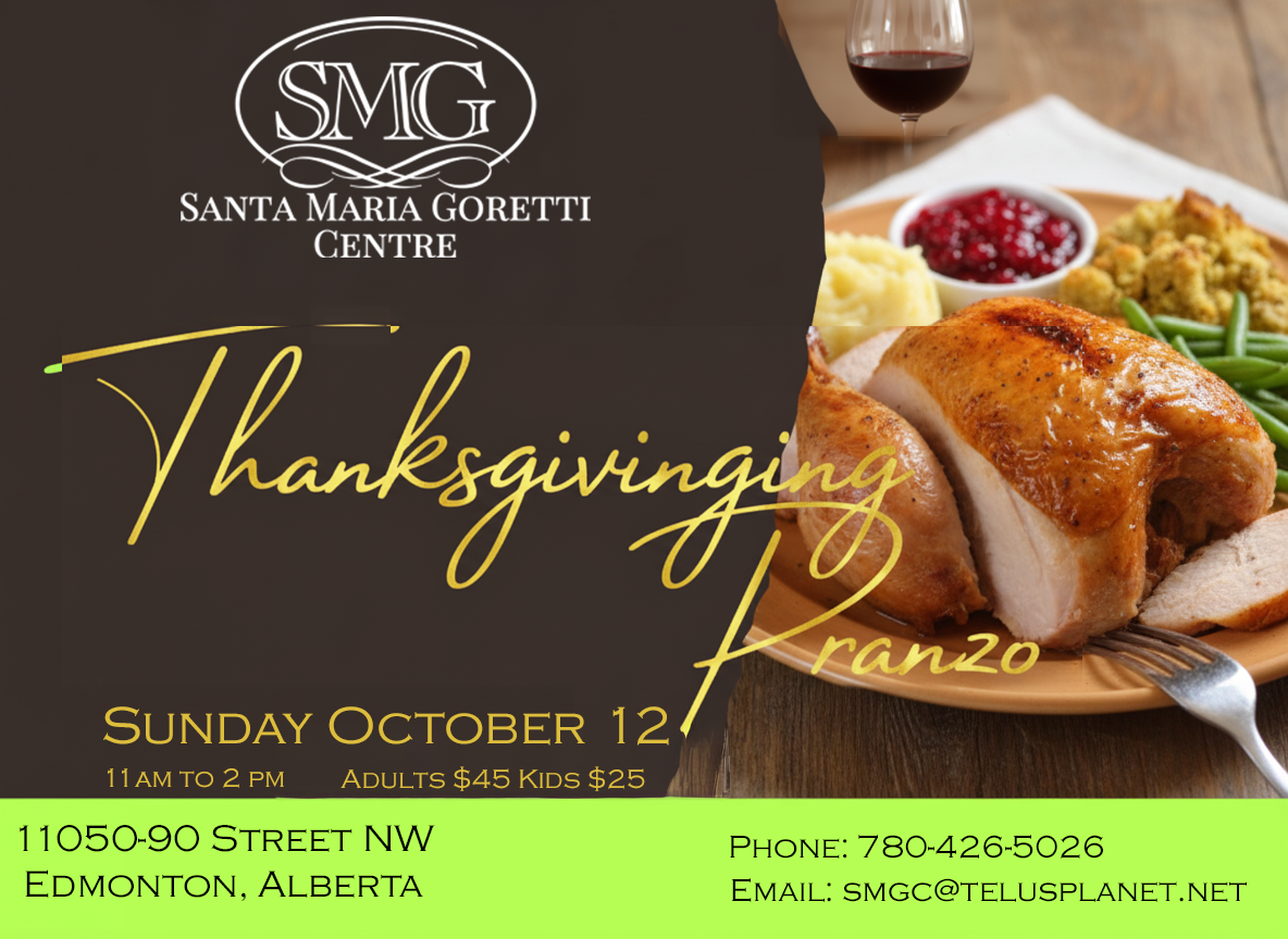 Santa Maria Goretti Centre is Edmonton’s original home of Il Pranzo; a bountiful, seven course, homestyle Italian lunch served family style. For over 35 years our community has enjoyed good food in good company, like all big Italian families do.